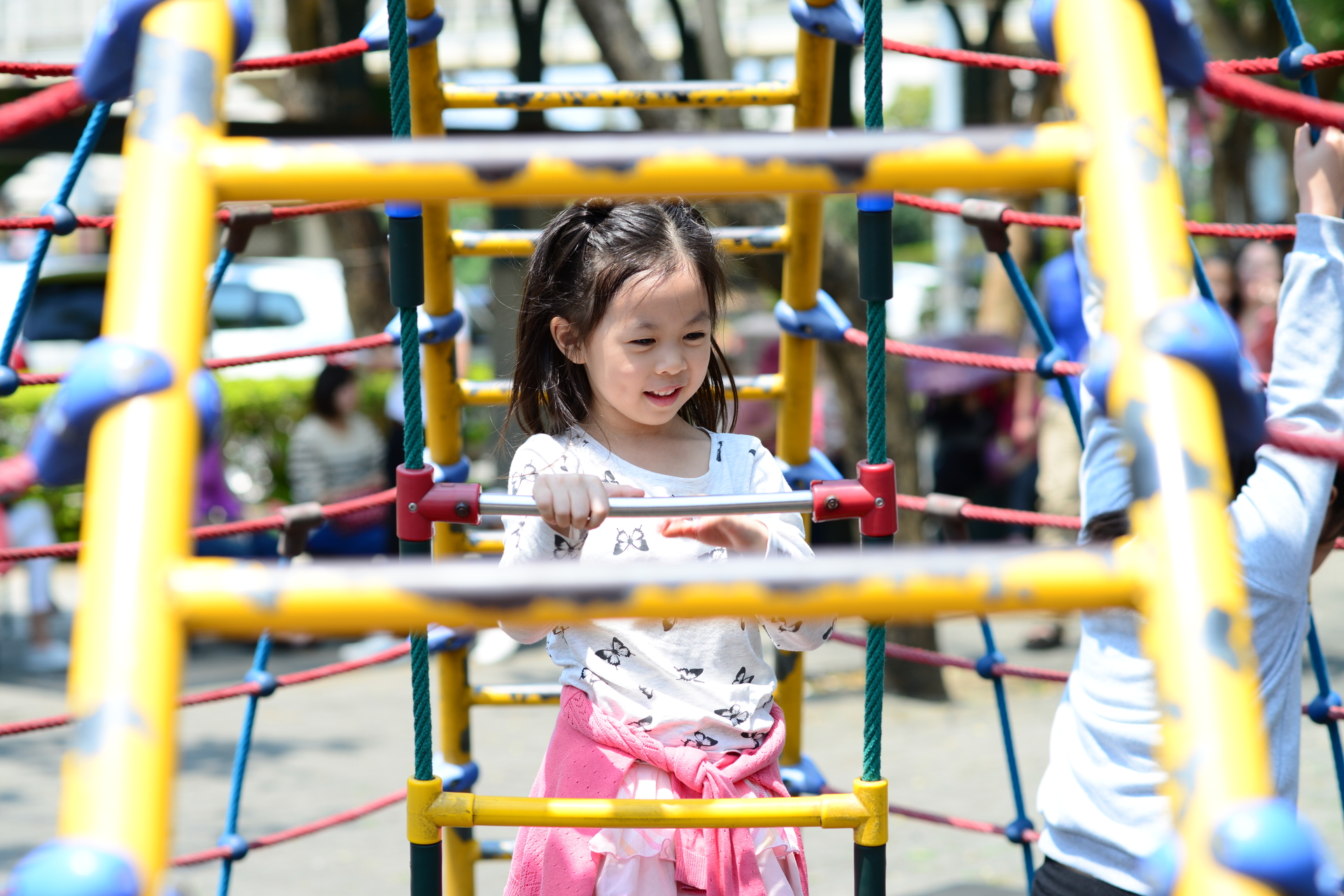 在色彩繽紛的遊戲設施中,交織形成的網絡,就像是個籠子,卻侷限不了孩子那純真而嚮往自由的心!