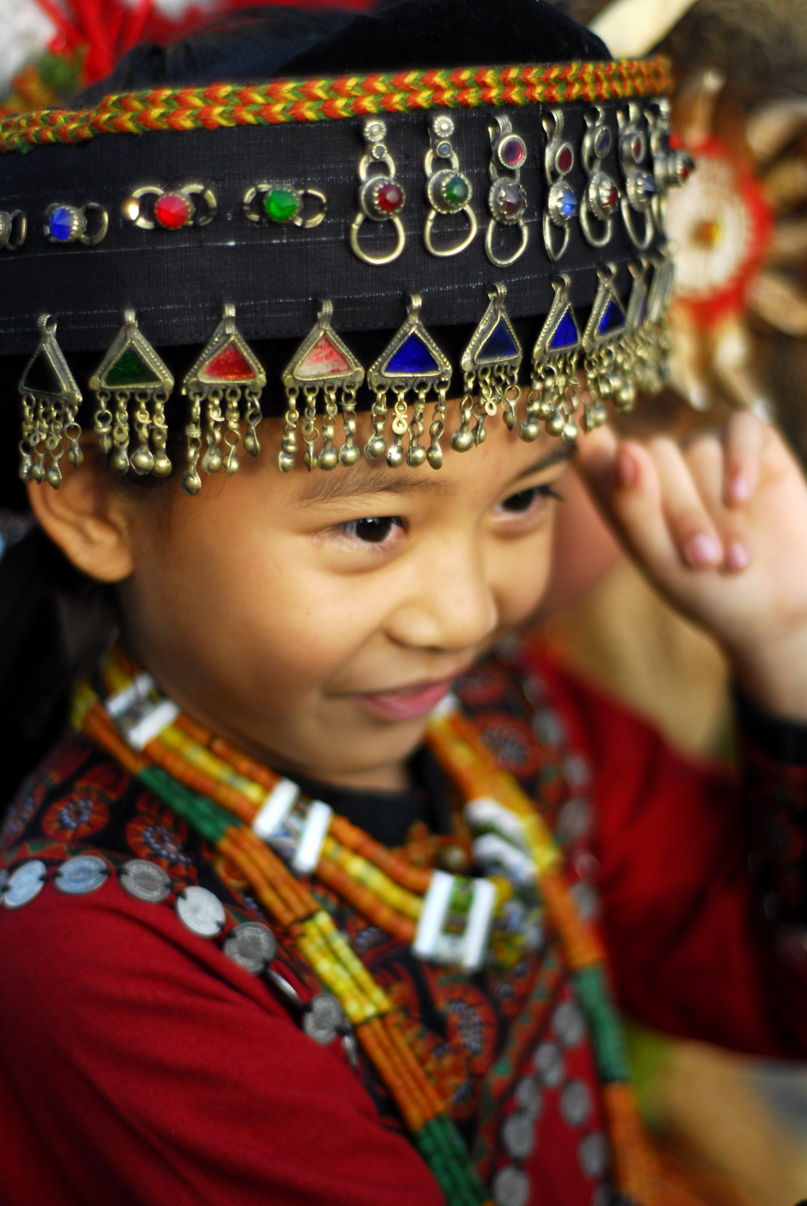 原住民傳統服飾非常的鮮豔,加上琉璃珠,羽毛,百合。這位小女孩有點害羞,但也很可愛的配合拍照。