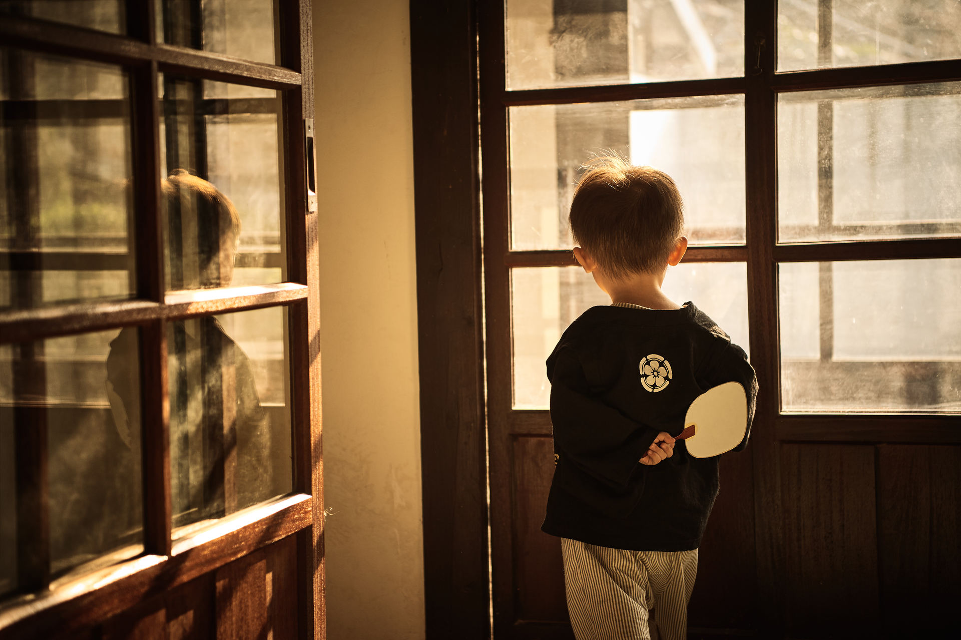 這天充滿父愛的幫吾兒拍攝兩週歲紀念寫真,當這個背影出現時,心裡想著:如果他能把扇子揹在腰上一定很不錯? 令人訝異的下一秒,父子同心大感動阿!!